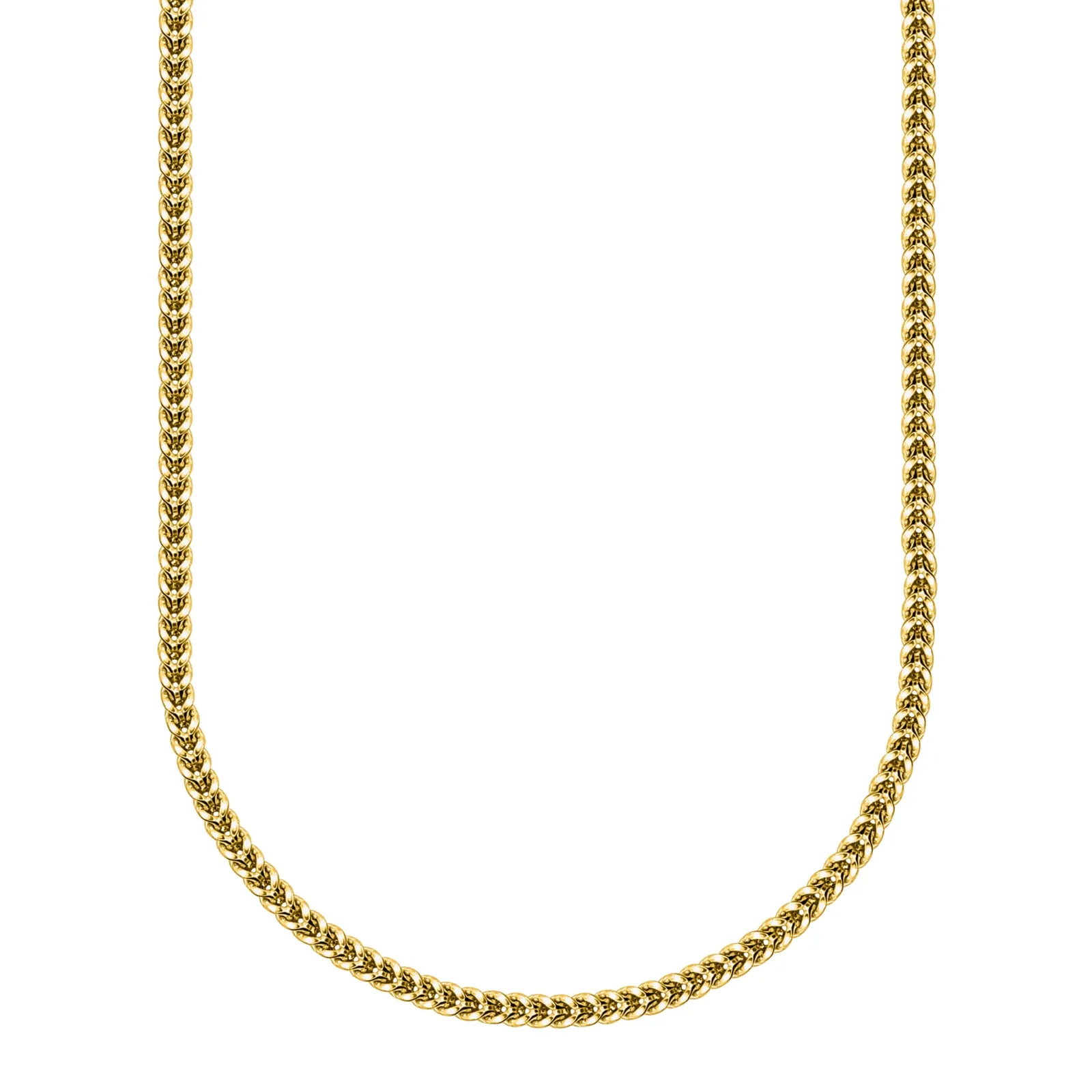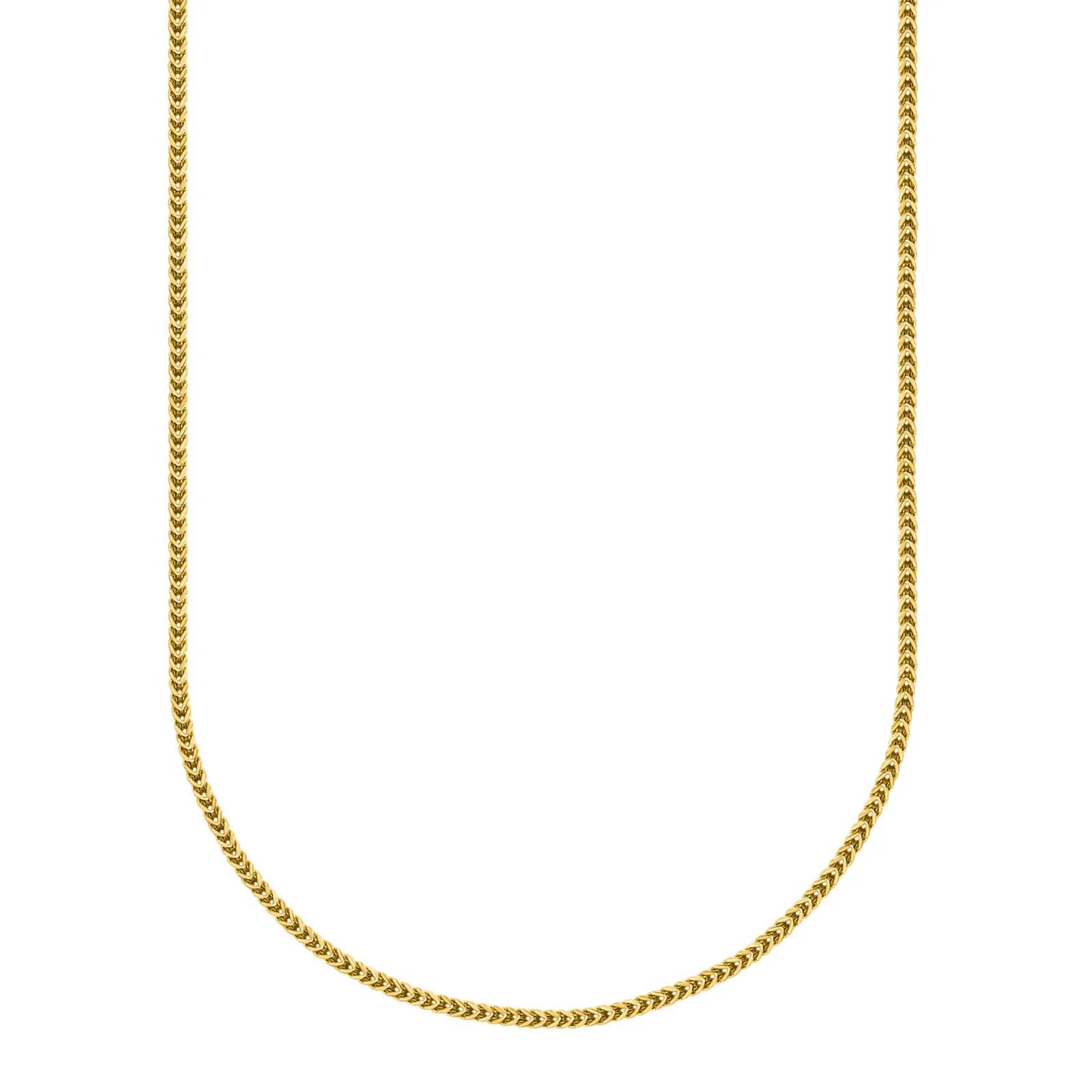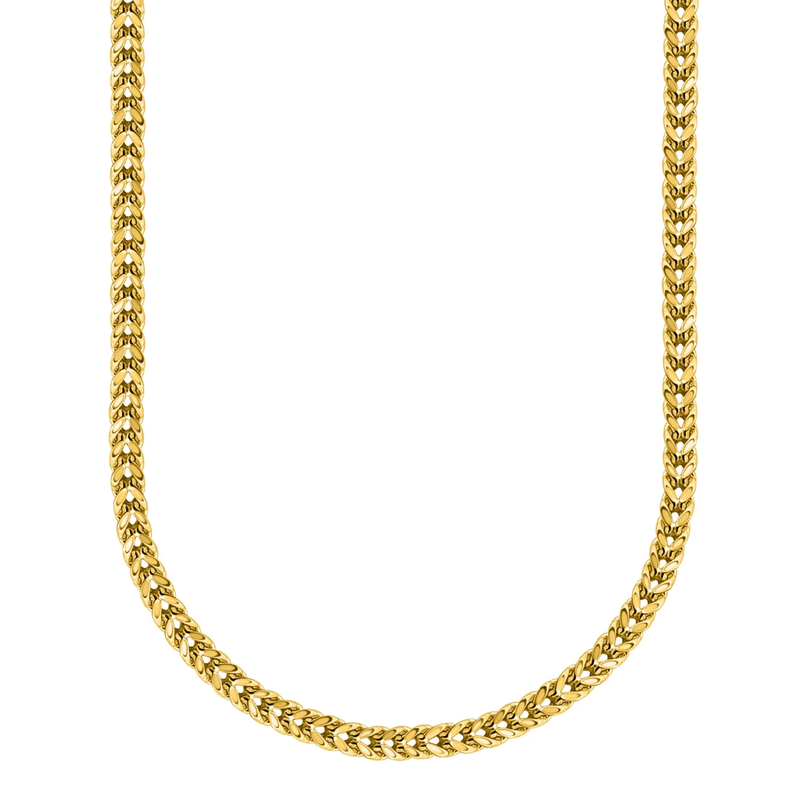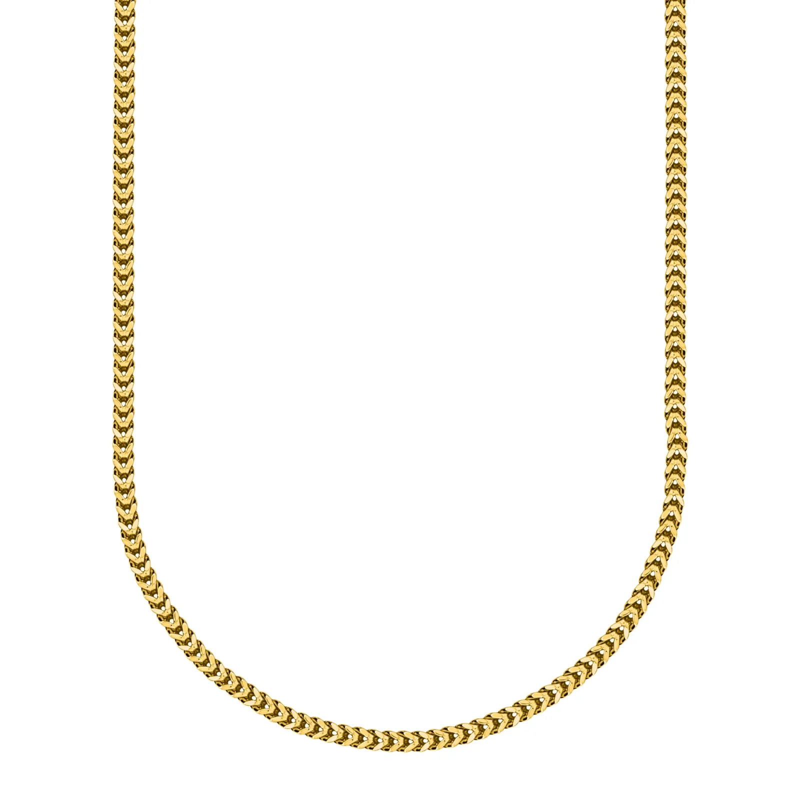 Cadena Franco clásica en oro amarillo 10K. Elegante, fuerte y refinada, con eslabones entrelazados en forma de V que crean un diseño distintivo y resistente al desgaste diario.