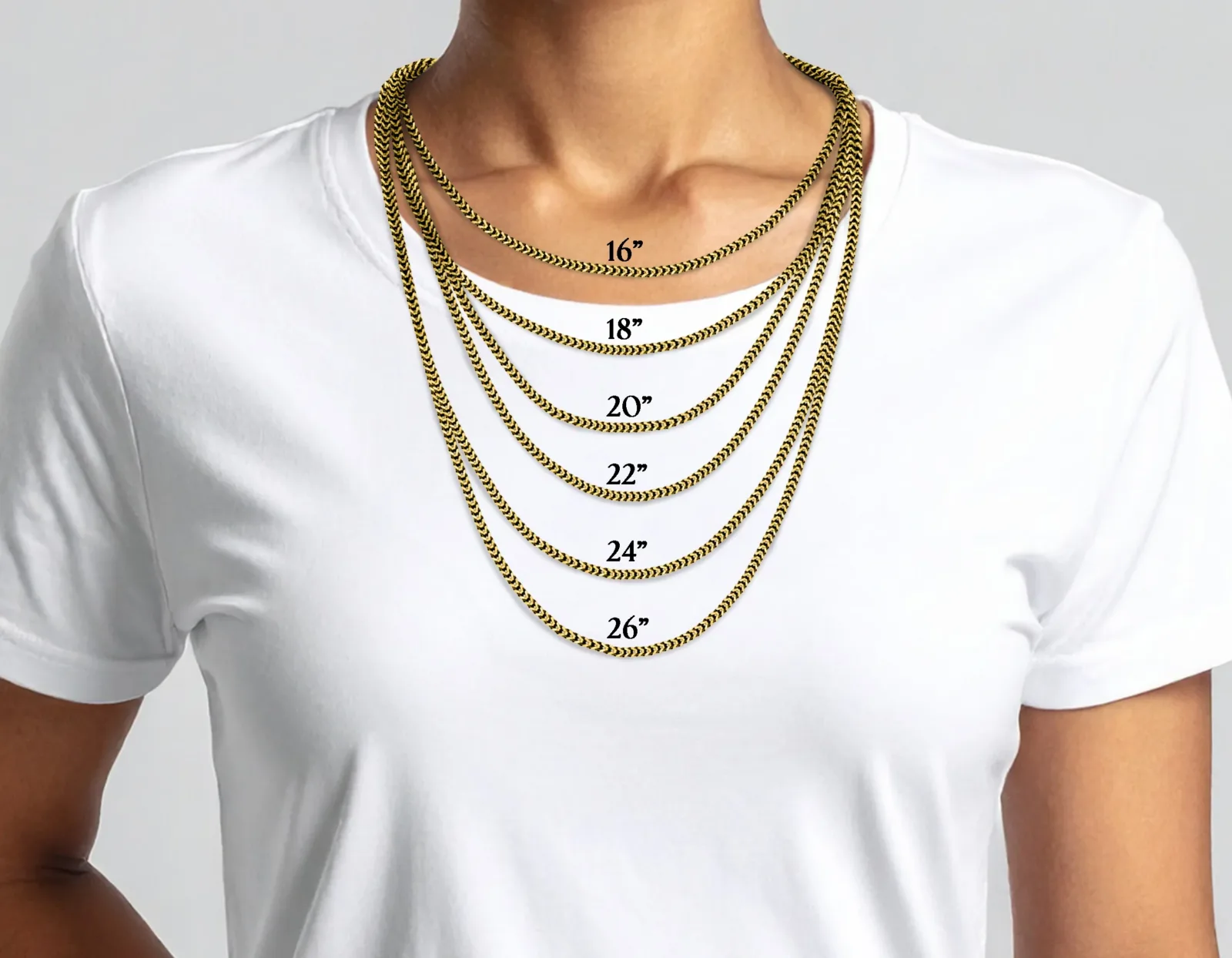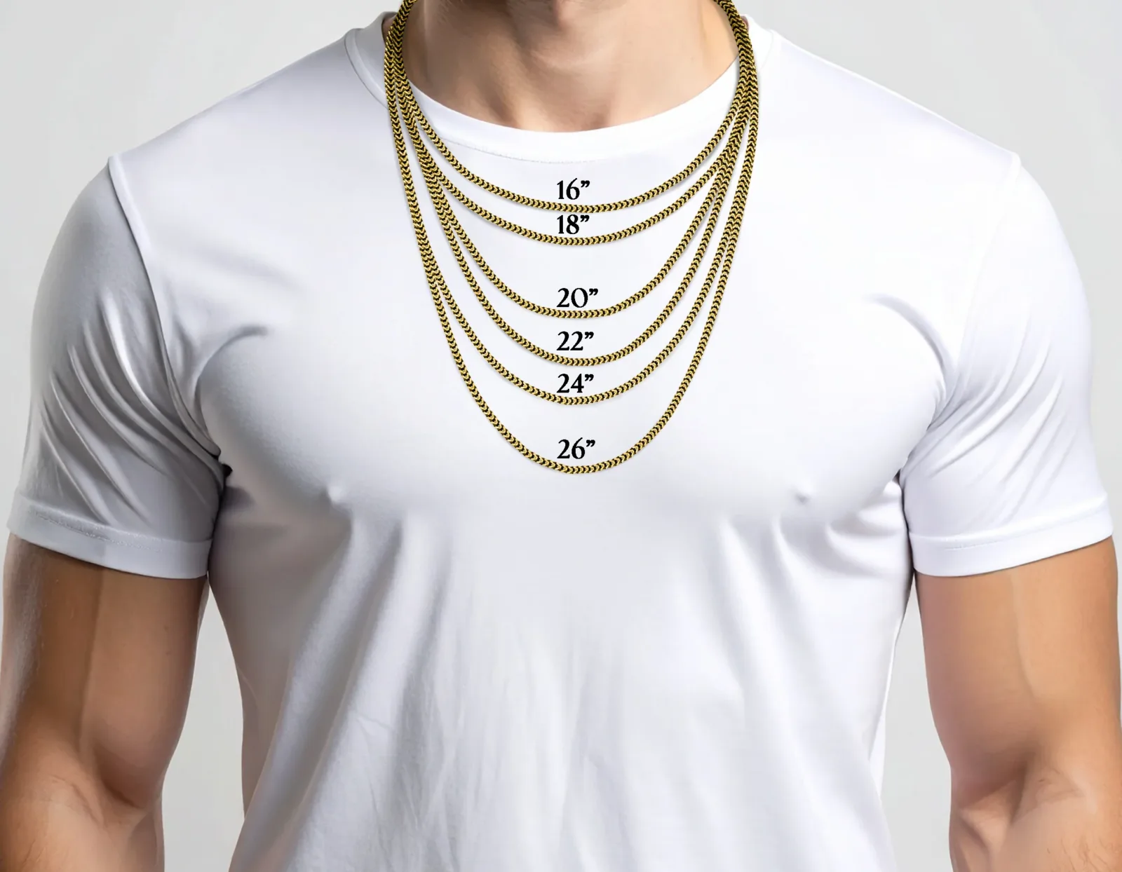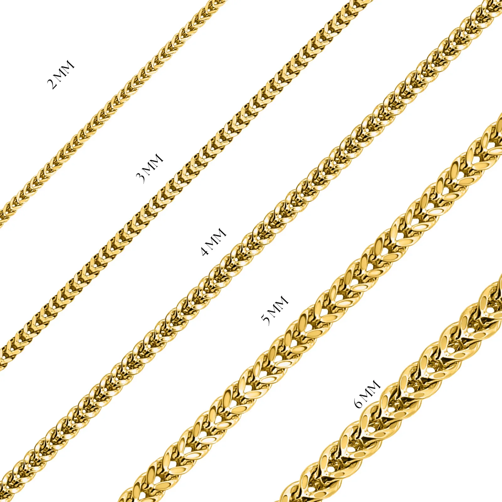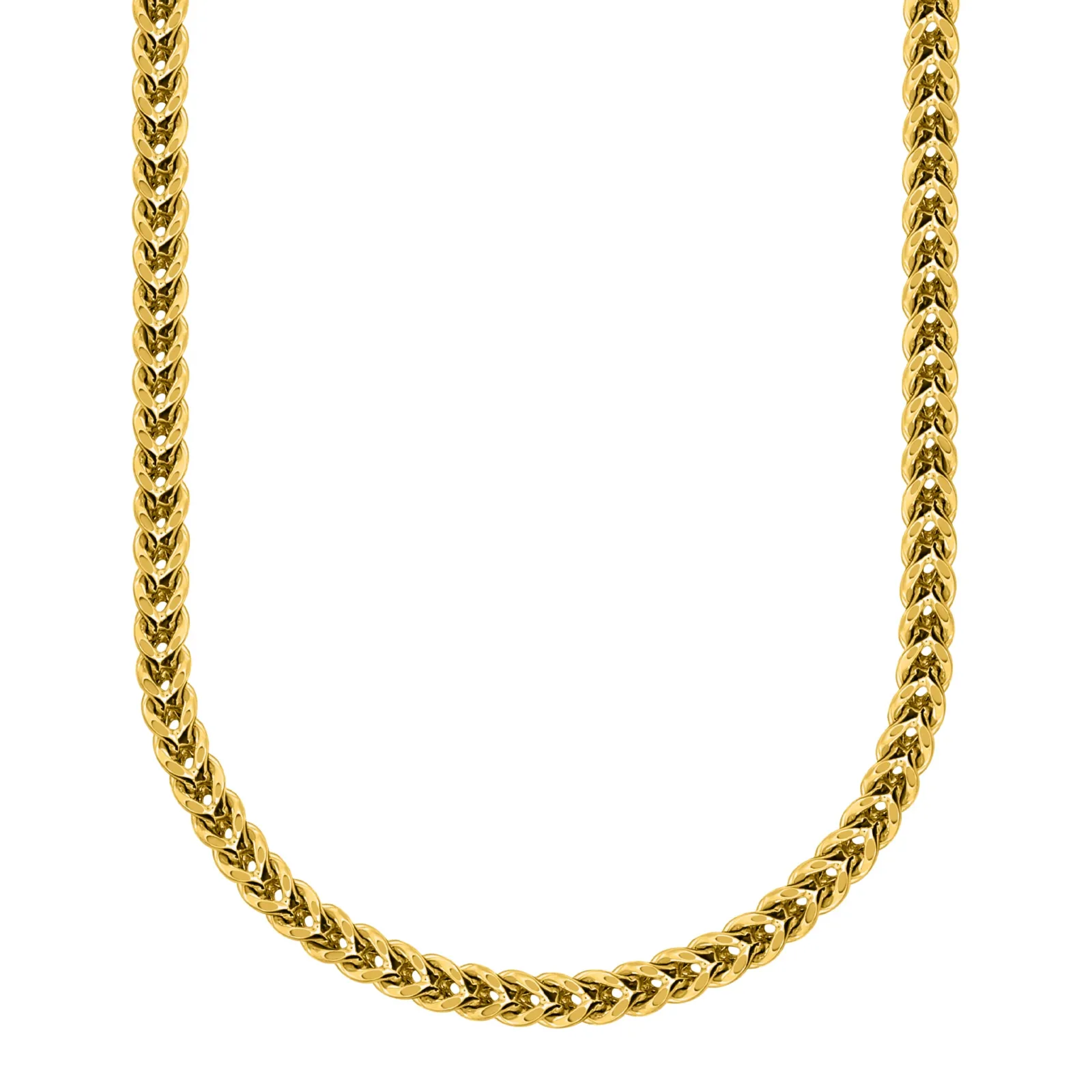 Cadena Franco clásica en oro amarillo 10K. Elegante, fuerte y refinada, con eslabones entrelazados en forma de V que crean un diseño distintivo y resistente al desgaste diario.