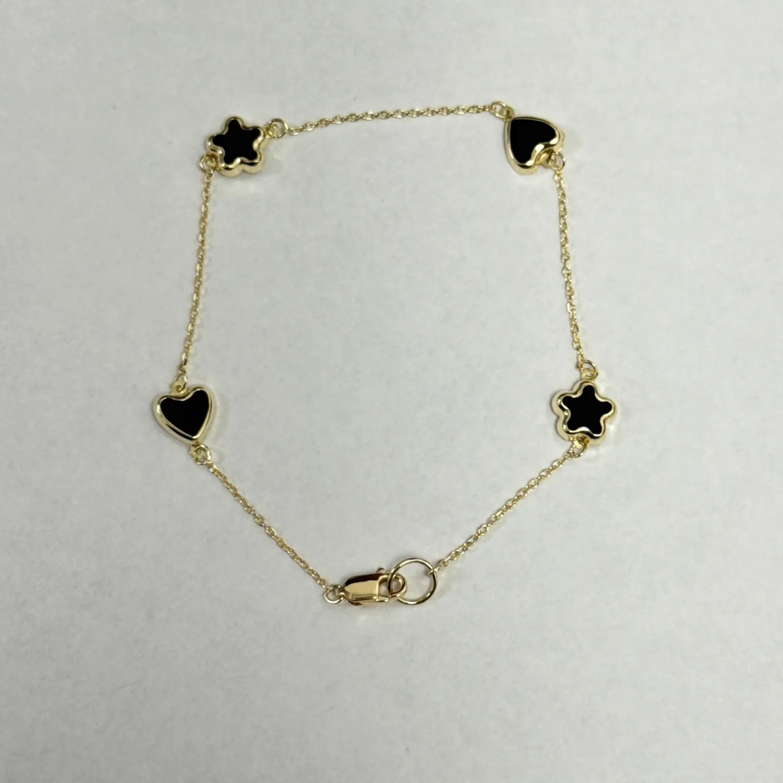 Pulsera de Oro Amarillo con Dijes de Estrella y Corazón 10K